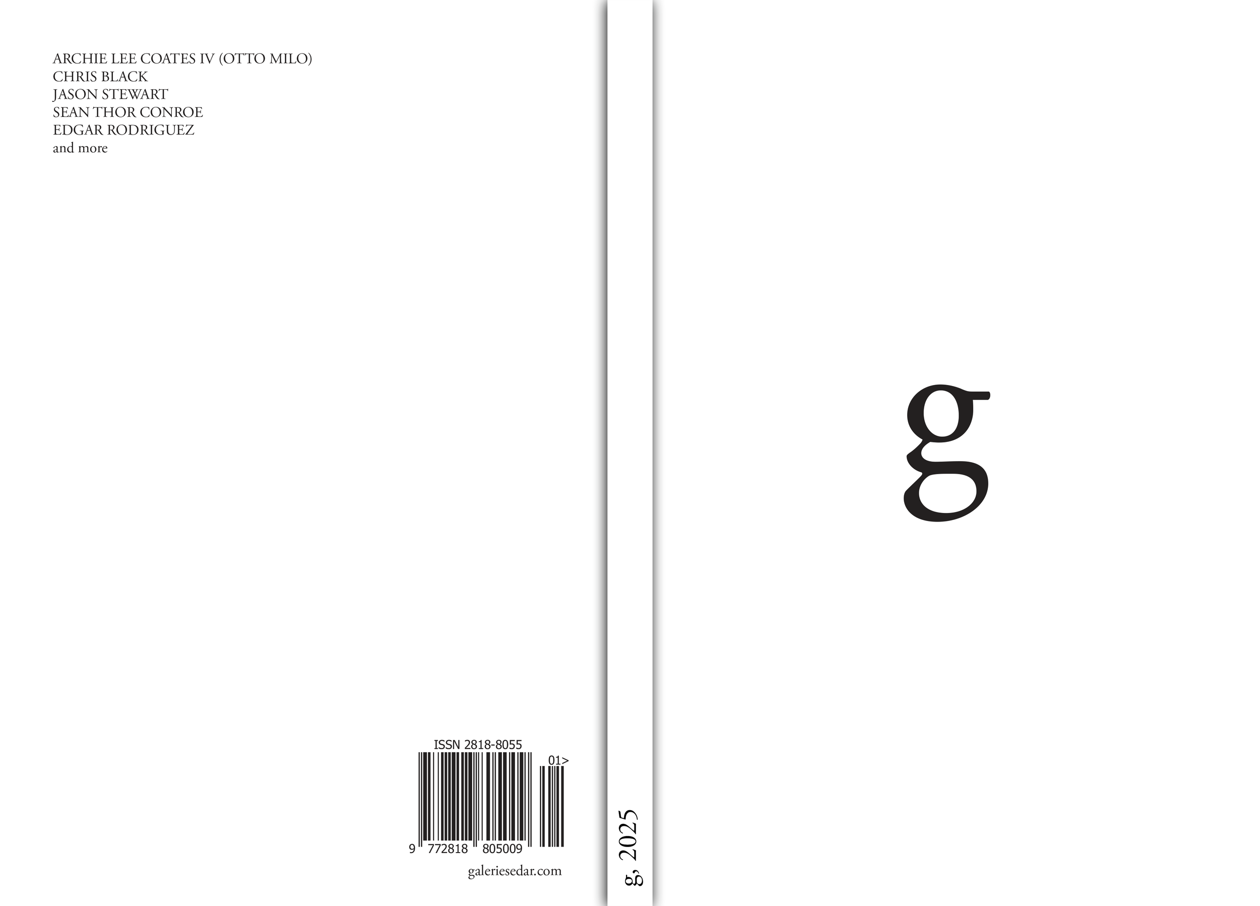 Galerie’s 2025 print issue features Edgar Rodriguez, Archie Lee Coates IV, Chris Black, Jason Stewart, Sean Thor Conroe, Jenno Christian and more.7x10”, 210 pages, $30.Editor-in-Chief Clem SedarArt Director Teo Nio View fullsize …G26